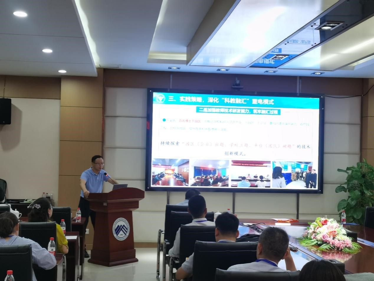 5月19日下午,重庆市职业教育学会2024年学术年会在重庆建筑科技职业学院学术报告厅启幕,此次年会以“‘三教三融’赋能新质生产力发展”为主题,旨在服务教育强国、强市建设,为西部大开发形成新格局贡献智慧和力量。我校作为承办单位之一,组织开展了主题为“健全职业教育科教融汇新机制”分论坛,中高职院校代表约60余人参加了分论坛。分论坛由重庆职业教育学会副会长、重庆市教育科学研究院科研处处长沈军主持。