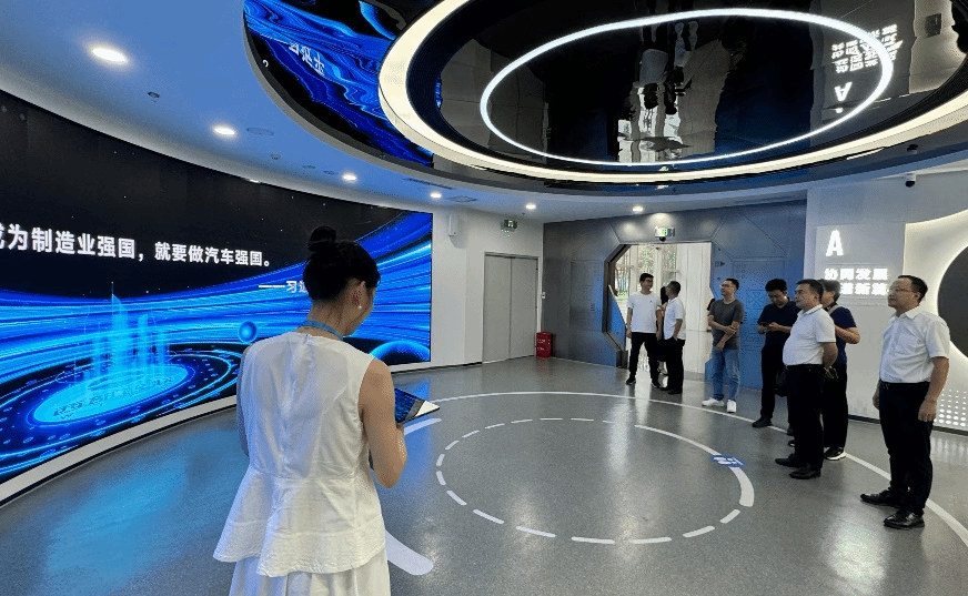 聂强一行首先参观了智能网联汽车创新应用展厅、西部智联车路云一体化实验室等标志性区域。在座谈会上,褚文博祝贺学校办学的进一步提升,并回顾了前期双方在标准研发、项目研发等方面的合作。针对西部智联在智能网联汽车领域的研发和服务能力,聂强介绍了学校围绕智能网联产业相关学科(专业)建设、科研创新和高技能人才培养的情况。聂强强调,学校相关学院应主动对接西部智联产业链上企业,了解链上企业真实需求,在真实需求中找准人才培养的关键点,在项目合作中寻求科技创新的真问题,畅通学校人才培养、科技创新与服务产业(企业)的“最后一公里”,多方共同携手助力重庆万亿级产业发展。