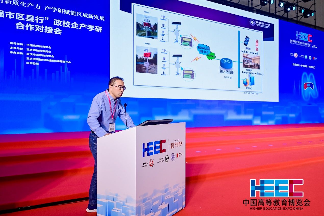 会上,学校与合川区就科技成果转化、产教融合等签订战略合作协议。随后,西南石油大学、重庆理工大学、重庆电子科技职业大学等成渝高校进行成果发布。我校人工智能与大数据学院秦长春副教授就“中国—老挝国际合作科研项目——PM2.5实时监测系统”进行成果发布,该项目为老挝教育部门提供了整套软硬件一体的院校气象智能检测系统,通过实时收集气象信息、数据分析和智能预警,解决了老挝院校空气污染后信息不畅通的问题。该成果受到了市教委、参会区县及相关企业的高度关注和认可。