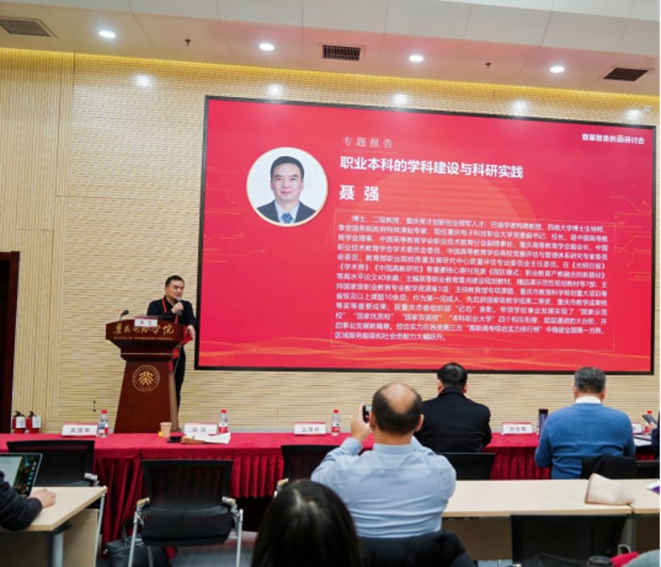 会上,北京大学集成电路学院重点介绍了其“未来集成电路产业创新中心”的建设经验与运行机制,分享了在产教融合、协同育人方面的创新实践。聂强校长受邀做了《职业本科的学科建设与科研实践》的主旨报告,和与会嘉宾就集成电路产业人才需求趋势、课程体系改革、校企合作平台搭建等话题进行了多角度、多层次的对话。